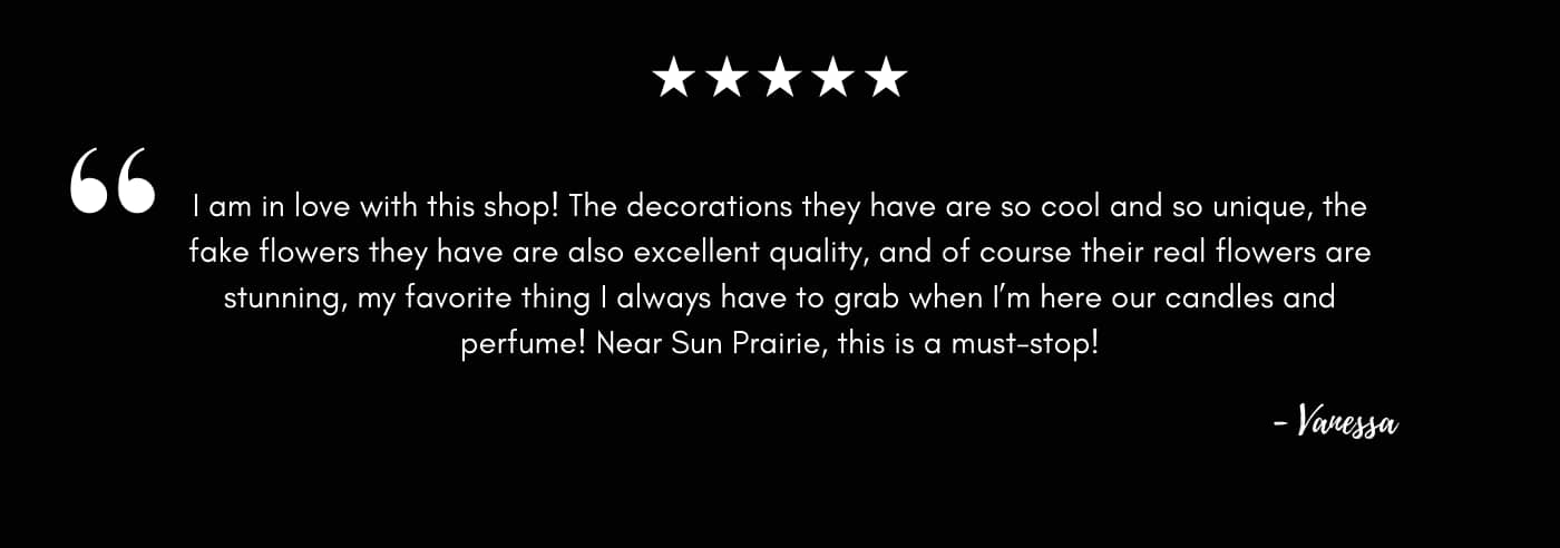 Welcome to Sun Prairie Flowers. We are a full-service florist located in historic downtown Sun Prairie. We're proud to be locally owned and operated. We offer personally designed custom floral arrangements for your special occasions and every moment in between. Stop in to shop our eclectic collection of giftware and home goods. We and our team of talented designers are honored to be a part of your memorable moments and look forward to serving your floral and gift needs.